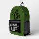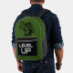 Lightweight and durable, our Level Up/ Own the Game QB Combo Design Backpack is just what you need. The spacious interior is ideal for travel, school, gym, or any mobile storage need. Bring your stuff with you in style for the gym or practice field! Features Adjustable padded shoulder straps, two chambers on the inside for laptop storage, mesh side pockets and an identification label.