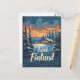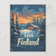 A picturesque and nostalgic portrayal of Levi, Finland, during the winter season, highlighting its stunning snowy landscapes and enchanting atmosphere. The design captures the pristine white snow covering the Arctic wilderness, with snow-capped trees, cosy log cabins, and the Northern Lights dancing in the starry sky. Rendered in a vintage style, the artwork evokes the tranquil beauty and magical ambiance of Levi in winter, inviting viewers to experience its unique blend of nature and tranquillity.