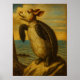 This poster features a vintage oil painting style interpretation of the Mock Turtle character from Lewis Carroll's 'Alice's Adventures in Wonderland' (1865). The creature is part turtle, part bovine calf. The Mock Turtle is a very sad character from the children's adventure story, and is depicted crying.
