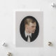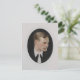 A portrait displays a man in a suit with neatly combed hair, gazing to the side. The image is set within an oval frame on a plain background.