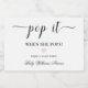 Let your family and friends toast the arrival of your sweet baby with these 'Pop it when she pops' sparkling wine favour tags. The tags feature a calligraphy pop it heading with a minimal design. The script 'Pop it" heading is an image that cannot be edited. All of the other text is fully editable. For more advanced customisation of this design, simply select the "Customise It" button above.