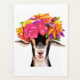 Features my digital painting of a goat wearing a posy of flowers on her head.