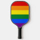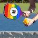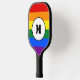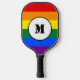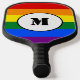 Pickleball Paddle with LGBT (lesbian, gay, bisexual, and transgender people) rainbow stripes pride flag, striped pattern with customisable monogram template design