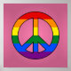 Poster with a peace symbol in colors LGBT (lesbian, gay, bisexual, and transgender people) rainbow stripes on pink background