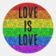 LGBT flag vibrant Sparkle Love text customise Classic Round Sticker