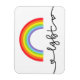 This artwork features a hand drawn hand waving a colourful rainbow flag.