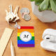 Keychain with the LGBT flag with rainbow stripes of red, orange, yellow, green, blue, and purple, LGBTQ pride design with a custom text field for your initial