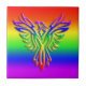 A gorgeous LGBT tile. It features an embossed-look, rainbow phoenix, wings outstretched and rising from the ashes on a matching rainbow background