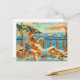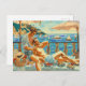 A postcard with unique design of a couple of men sunbathing facing the sea.