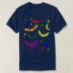 I give wanted to give this a 4 instead of a 5 because these Basic DARK T0shirts run unexpectedly SLIM or Narrow. Which is great if you do not have a potbelly, but I have a paunch. It isn't the shirt's fault that I've got a beer belly. The design and shirt itself is a quality cotton shirt. The color is more of a deep purple, but still a very pretty color. The Basic DARK T-shirts run a bit SLIMMER than the Basic Ts. The neck is a fraction narrower (or seems to be narrower) also. I'm a paunchy middle-aged woman and my neck is 12 inches (31cm) thick and the neckline fell about the same as in the photo of the man, and I had the desire to tug it a bit. So if you're a thick necked man or like loose shirts, be aware these are slimmer shirts. Once I get rid of my lockdown paunch it'll look great. The shirt washed well in cold water with no apparent bleeding. We don't have a dryer, so it hung dry. Did not shrink. Love the colors and the design. The design looks smaller on my shirt than it does on the model on-line. But still, it looks good on the shirt. The printing looks as it does on the model, just the size seems fractionally smaller. Washed garment in cold water, hung dry and design appeared unaffected.