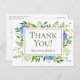 This beautiful thank you postcard with blue hydrangeas and foliage on the front and a beautiful, personal, typed note on the back will make sending thank you notes that much easier. Get enough to thank all your guests at your showers and your wedding.