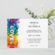 Embrace the spirit of your love story with this vibrant and authentic wedding invitation. The design, perfect for a horizontal layout, is a celebration of pride and unity, featuring a cascade of rainbow-infused brushstrokes across the top. The word "LOVE" is boldly centred in crisp white letters, serving as a beacon of your joy. Below the artwork, your names are elegantly scripted.