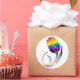 a single bright tulip in the colours of the LGBTQ+ pride flag against a clean white background. This vibrant floral theme celebrates love, inclusivity, and individuality.