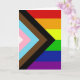 The "Progress" variation of the Rainbow flag adds a chevron along the hoist that features black, brown, light blue, pink, and white stripes to bring those communities (marginalised people of colour, trans individuals, and those living with HIV/AIDS and those who have been lost) to the forefront; "the arrow points to the right to show forward movement, while being along the left edge shows that progress still needs to be made."