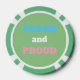 This awesome set of poker chips features a digital art image of a caterpillar with a sad face, a cocoon or chrysalis and a butterfly. The caterpillar is blue at the back and becomes paler and more purple with each body segment. He has pretty curled antennae and big eyes with pale pupils. He is unhappy because he wants to change his gender. The cocoon is blue, pink and white representing the transgender pride flag and the change of gender or metamorphosis. The butterfly is pink with pretty patterns on her wings and a big smile on her face. She represents the happiness after the change of gender has been completed. This design is for male to female gender reassignment. This design is to show my love for and support of all trans people and those who love and support them. There is custom text on the back that says trans and proud in the colours of the trans pride flag.