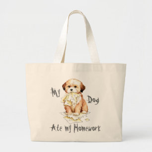My Lhasa Apso Ate My Homework Large Tote Bag