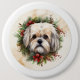 Lhasa Apso Christmas Wreath Festive Pup 6 Cm Round Badge