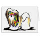 Funny artwork by Andie of Off-Leash Art of a Lhasa Apso dressed like a hippie with head band and rose coloured glasses. Spread some laughs while showing your love for the breed.