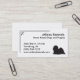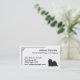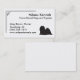 A simple black and white business card design featuring a silhouette of a Lhasa Apso with a geometric pattern border in the corner.