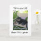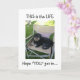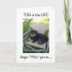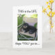 This card is great fun and good quality. I loved the humour inside and on the back. There is the opportunity to change the orientation of this card from landscape to portrait, which I did. It is relatively straightforward to amend the typeface to fit the new orientation. It was well packaged with no plastic. The printing on this card is excellent.