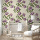 Liana plant pattern with purple Clematis blossom Wallpaper