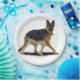 A photograph of a beautiful German shepherd so you will feel free to WOOF your food. Match these plates with paper napkins with the same image for coordinated place settings at your next party or event.