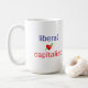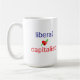 Liberal Capitalist Funny Political Mug for a "Liberal Capitalist." features text and an image of a red bleeding heart (signifying liberal) pierced by a green financial graph arrow going upward (signifying capitalist). This cool centrist political mug is sure to please the liberal capitalist in your life. Not all who are social liberals are socialists or communists. And not all capitalists are in the MAGA club. Some conservatives are for helping the poor and have a live-and-let-live attitude towards other people, and many progressives really enjoy making a lot of money, It happens. Change the colour and style of the mug or beverage container as well as the image and text to suit yourself or the recipient. For more cool T-shirts, cards, and gifts, visit our store at zazzle.com/vicesandverses.