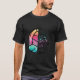 I give wanted to give this a 4 instead of a 5 because these Basic DARK T0shirts run unexpectedly SLIM or Narrow. Which is great if you do not have a potbelly, but I have a paunch. It isn't the shirt's fault that I've got a beer belly. The design and shirt itself is a quality cotton shirt. The color is more of a deep purple, but still a very pretty color. The Basic DARK T-shirts run a bit SLIMMER than the Basic Ts. The neck is a fraction narrower (or seems to be narrower) also. I'm a paunchy middle-aged woman and my neck is 12 inches (31cm) thick and the neckline fell about the same as in the photo of the man, and I had the desire to tug it a bit. So if you're a thick necked man or like loose shirts, be aware these are slimmer shirts. Once I get rid of my lockdown paunch it'll look great. The shirt washed well in cold water with no apparent bleeding. We don't have a dryer, so it hung dry. Did not shrink. Love the colors and the design. The design looks smaller on my shirt than it does on the model on-line. But still, it looks good on the shirt. The printing looks as it does on the model, just the size seems fractionally smaller. Washed garment in cold water, hung dry and design appeared unaffected.