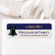 Add a polished patriotic touch to your mail with this Liberty 250 family address design featuring a bold Liberty Bell icon, rich navy banner, warm gold accents, and elegant personalized name styling. The layout is optimized for small return address labels while keeping the family name and address clear, readable, and stylish.