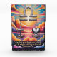 This design blends the Libra scale with scripture, balancing faith and love in radiant colour.