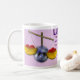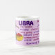 A lovely zodiac sign mug, with a cute graphic and a description of the sign Libra.
