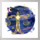 Personalised Libra Scales zodiac birth date real foil wall art print. Beautiful personalised astrology theme print featuring a deep navy and purple night sky with our hand-drawn zodiac Libra Scales, constellation and stars in real gold foil. Makes a great personalised birthday gift for the astrology lover. Design by Moodthology Papery. *Please note: frame not included, only includes the print*