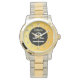 Very good quality watch that looks good whether dressing up or down. The band is sturdy. The watch is rather large so might not work for smaller folks. Recommended as a good gift. Printing is just a touch light but adds a nice touch of personalization.