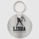 This personalised keychain features a silver metallic background along with the Libra Man with scales zodiac symbol. Choose from three different styles.