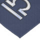A silver chrome like Libra Zodiac symbol on a navy blue carbon fibre style design texture print background. A modern racy design for a great custom birthday gift idea.