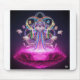 An intricate, complex structure of multi-colored light and energy emerges from a multi-faceted radiant magenta gem. The structure is composed of interconnected lines and data streams in a spectrum of vibrant colors, symbolizing a dynamic and living library. The gem itself is pulsating with energy, and the entire scene is set against a cosmic backdrop.