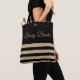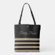 Keep up with your library books with this dedicated tote bag in fashionable black and tan stripes. Optional monogram.