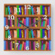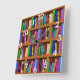 The bright bookshelf pattern on this beautiful wall clock is perfect for bibliophiles / proud bookworms. The graphic pattern repeats, with about 25 books total. Some lean, some stand up straight, and they're all brightly coloured and sitting on a shelf frame with a wood grain look. It's the perfect way to display your love for reading and libraries and would look nice on your reading room wall. It also makes a great gift for an avid reader, book collector, English teacher, writer or librarian. Clock numbers are white with a black outline. See matching items in our store!