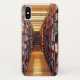 This iPhone X case takes you on a walk down a long aisle of books in the stacks of a huge library. The bright lighting reveals book spines in a kaleidoscope of colours: red, green, blue, black, white, gold, brown, purple. The symmetrical angle creates a geometric abstract design that seems to lead to infinity.