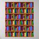 The bright bookshelf background pattern on this beautiful wall poster is perfect for bibliophiles / proud bookworms. The graphic pattern repeats, with about 25 books total. Some lean, some stand up straight, and they're all brightly coloured and sitting on a shelf frame with a wood grain look. It's the perfect way to display your love for reading and libraries. It makes a great gift for an avid reader, book collector, English teacher, writer or librarian. "Customise It" to resize this infinitely repeating pattern if you want more or fewer bookshelves on your poster. See matching items in our store!