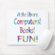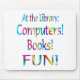 Promote the library with this colourful design and the words At the Library: Computers! Books! Fun! Great for all librarians.