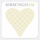 The pattern of interlocking rings that adorns the Library of Birmingham is depicted in the city's heart, with "I" and "am" of the name highlighted in gold. The rings symbolise the history of fine metal working, manufacturing and jewellery design in the West Midlands.
