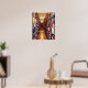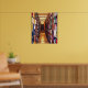 This poster takes you on a walk down a long aisle of books in the stacks of a huge library. The bright lighting reveals book spines in a kaleidoscope of colours: red, green, blue, black, white, gold, brown, purple. The symmetrical angle creates a geometric abstract design that seems to lead to infinity. The reflections on the freshly waxed floor contribute to the overall pattern.