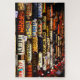 Americana themed photograph of a variety of license plates on the exposed beam ceiling of a popular-with-tourists restaurant