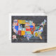 License Plate Map of the USA on Grey Wood Planks Postcard