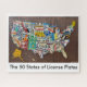 Hand-crafted out of genuine, used American license plates, this puzzle of "The 50 States of License Plates" is a classic piece of Americana, representing the finished product of social media creator Ethan the License Plate Guy's long-running License Plate Map series on Instagram, TikTok and YouTube.