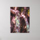 This Canvas Print features an original photograph by ZoeSPEAK, of softly coloured lichen growing on the bark of a Brazilian peppertree. The brown bark of the tree trunk is dotted with the pale greenish shapes of the lichen. The dappled sunlight shows off the curving branches of this old tree.