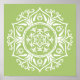 This white mandala sits on a bright, yellowish green background. The colour is natural and optimistic. Part of the Rosenn Mandala Collection.