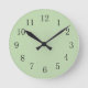 Lichen Moss Green color round wall clock adds a subtle light green earth tone accent to blend in to any kitchen decor. Powdery soft color is also ideal for a woman's bathroom. It's lowpriced enough for any budget but stylish enough for any modern kitchen. Adds an unusual touch to living room, den or dorm, room. Nice going-away gift for a student heading off to college!
