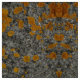 The pattern on this fabric comes from a photograph of lichen growing on granite. The bright orange yellow lichen provides a pop of colour against the grey and white rock.
